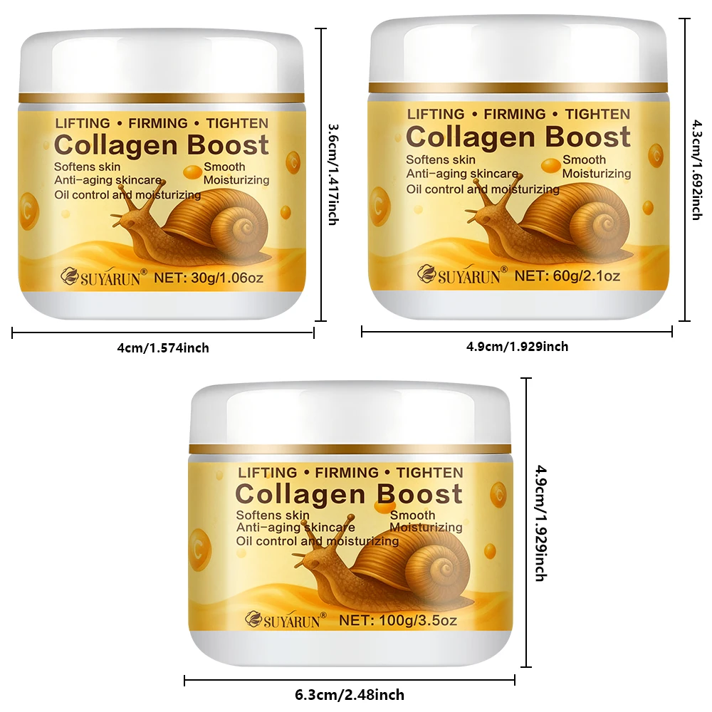 SUYARUN Collagen Boost Cream Snail Secretion & Retinol Anti-Aging Brightening Moisturizing Revitalizing Skin Care.